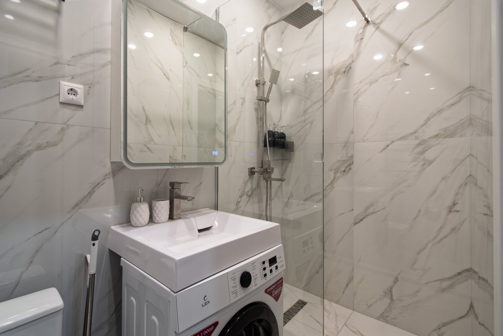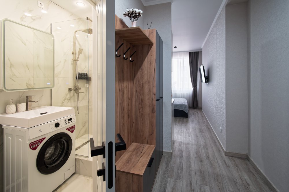 ✔️Душевая кабина, необходимые бытовые приборы: фен, гладильная доска и утюг.